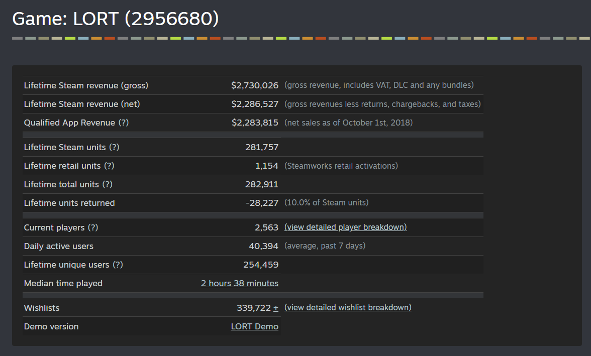 Now remember, this is still early in (less than two weeks into!) Early Access, with updates & a 1.0 version to come. We’d expect LORT to gross at least $10-$15m on Steam alone over time, with some decent possible console upside from there…