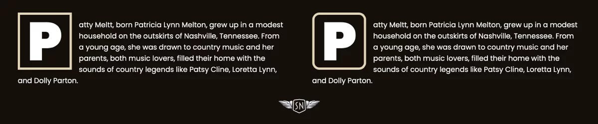 Patty Meltt wanted a website packed with design details. Every element added to a design is an opportunity to be expressive, and that includes her drop caps.